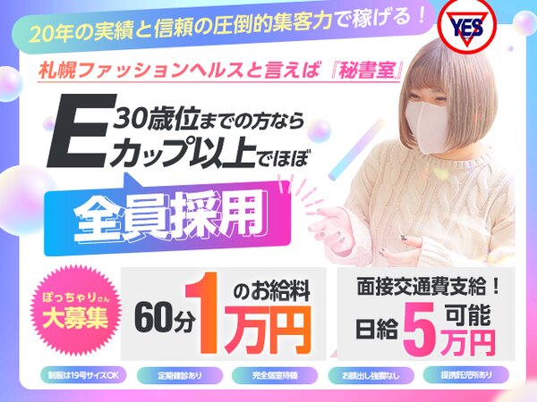| 仕事内容 | 秘書室は簡単♪超ソフトサービスのお店★在籍の8割以上が業界未経験でお仕事スタート☆ 簡単なマニュアル通りにサービスするだけだから、すぐにお仕事覚えられちゃいます★ 業界未経験の女の子でも面接したその日から働ける簡単なお仕事内容になっております。 ご心配な方のために1日体験、見学等も毎日行っております! 高収入・高待遇ですがハードなお仕事の強要はありません!顔出しナシでも稼げちゃう♪ ・細めの女の子・普通体型の女の子・ぽっちゃりの女の子、おっぱいがEカップ以上であれば即採用、即勤務可能です☆ 初心者、業界未経験の女の子・経験者の方・出戻り・YESグループ経験者 主婦の方、シングルマザーの方、学生さん、フリーターさん、本職のある方み~んな大歓迎!!\(//∇//)\ お仕事に慣れるまではお客様の接客人数を制限したり、 インターバル(接客と接客の間の時間)を多めに空けるなど、 貴女のペースに合わせ対応致します。 貴女の働きやすさを第一に優先して参りますので安心してください。 その他、何でも遠慮無くご希望をスタッフにお伝えください。 学費を稼ぎたい、夢を追い駆けたい、遊びたい、買い物したい、貯金したい☆全部叶えることが出来るお店です☆ 今でしたら積極的に採用しておりますのでチャンスです☆ご応募お待ちしておりますm(_ _)m |