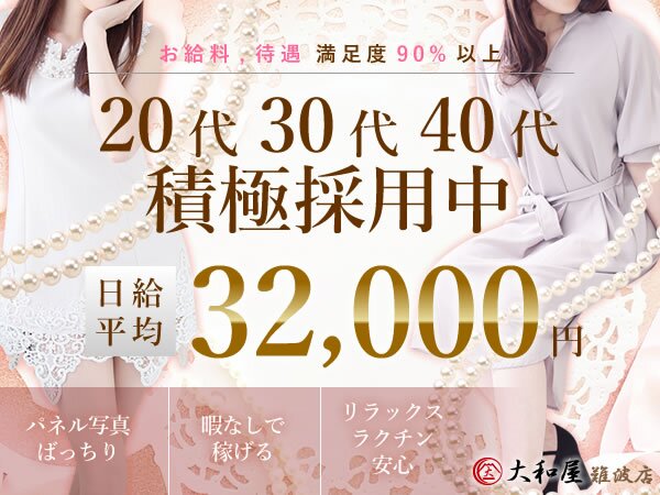 | 仕事内容 | 『大和屋 難波店』はホテルヘルスという業種のお店です。 【ホテルヘルスとは】 受付所があり、お客様は一度来店してからホテルへ入ります。女性はそのホテルへお伺いし、サービスをする風俗業種です。 ポイント:受付所で男性スタッフがお客様と料金のやりとりなどをします。まず最初にここでお客様チェックができるので、不衛生な方や泥酔者などをシャットアウト!お客様は完全会員制ですし、お金のやりとりを女性がしなくてもいいので、余計な心配がいりません。 また、モニターでお客様を確認できますので、会ったら知り合いとバッタリという事態がありません。 接客場所はホテルのみ!お客様のご自宅や遠方のホテルに派遣されることがないので、移動時間のロスなく効率的にお仕事できます。衛生面でも安心! ーーーーーーーーーーーー 【お仕事内容】 当店のコンセプトは「素人妻」なので、特に難しいプレイはありません。どなたでも口頭説明で覚えていただける内容です。 ※そのため男子スタッフとの実技講習はありません。セクハラ講習の心配なし! 人妻店にありがちな過激なプレイ・苦手なプレイを無理にする必要はありません。 また、本番行為も禁止しています。 当店では禁止事項(注意事項)をきちんとお客様用ホームページで明記しておりますので、気になる方はそちらもぜひご確認ください。 ーーーーーーーーーーーー 未経験の方でも、経験者の方でも丁寧に口頭でご説明しております!面接時でも入店後でも、わからないことや不安なことは遠慮なくご相談ください。 かけもちさん・OLさん・学生さん・主婦さん・ママさん…どんな方でも一度ご検討ください! お問い合わせ当日の面接・体験入店もいつでも受け付けております(*^-^*) |
